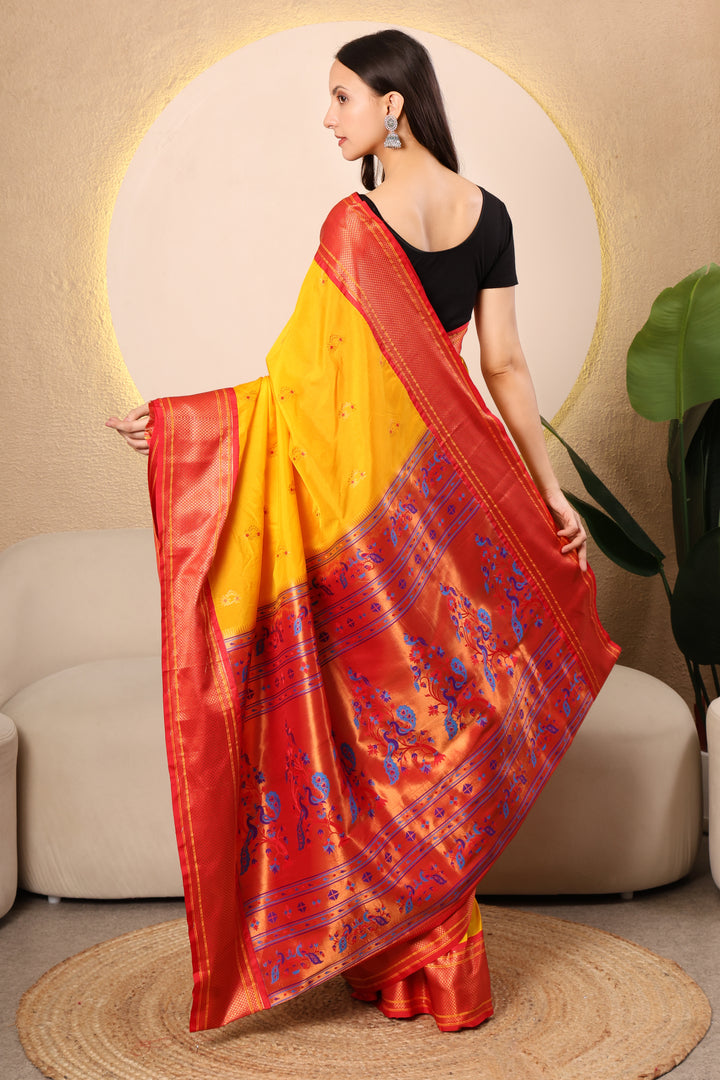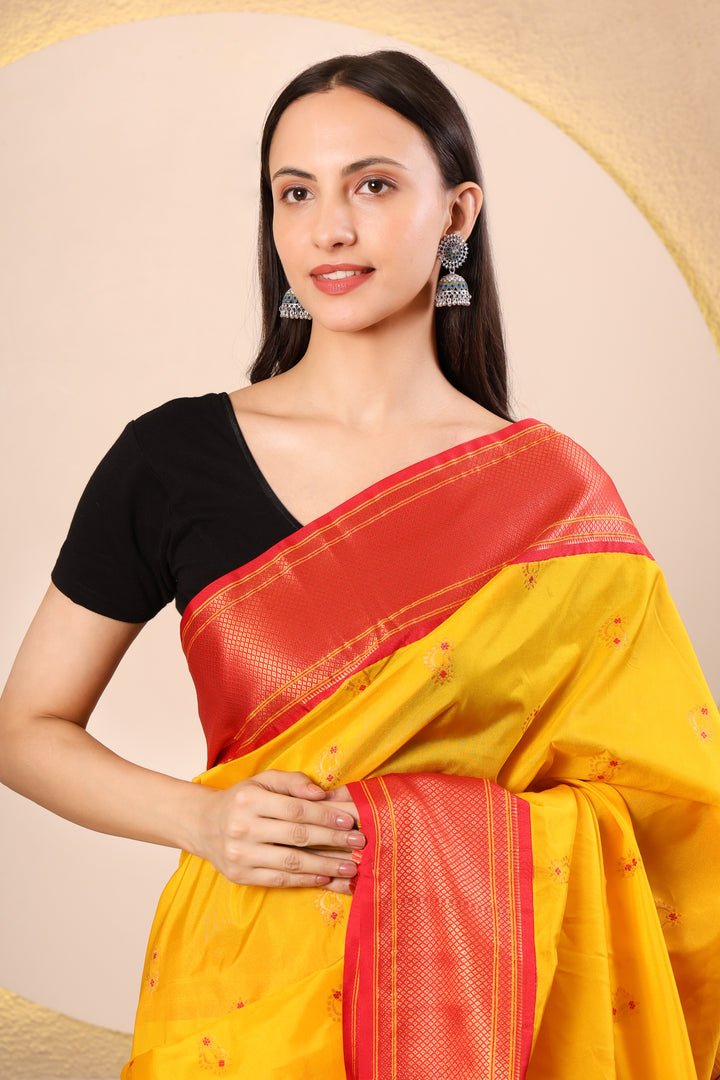 Comes with a matching or contrast blouse piece, adorned with zari borders for a complete look.